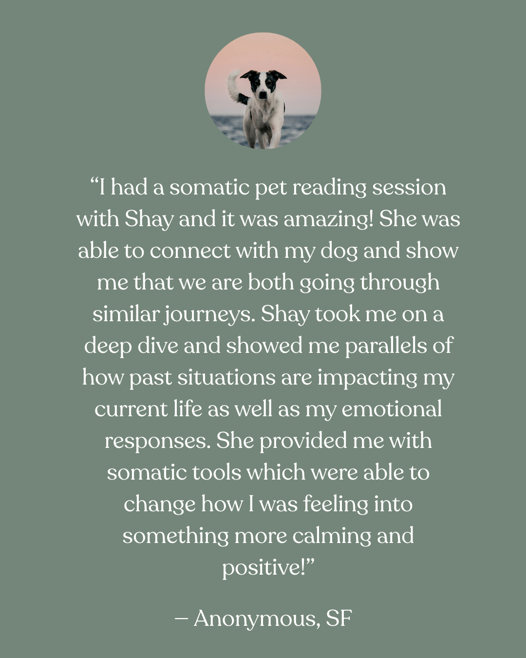 Somatic healing is gentle, body-based work that helps you listen to your body and release what you're holding so you can embody the grounded guardian your pet is asking for.